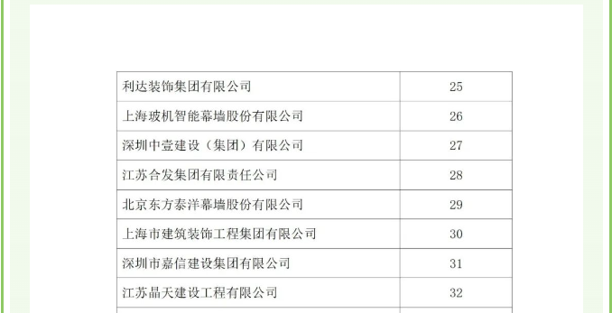 荣获2022年度中国建筑装饰行业综合数据统计,幕墙类排名第29名,比2021年度排名提升4位。