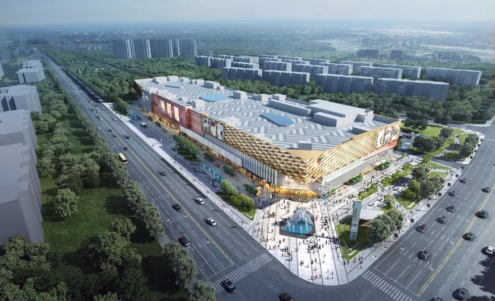 项目位于西青区张家窝镇,临近天津南站,距离外环9KM;周边原镇区人口众多,东侧毗邻规划公园;地段位于张家窝两条最重要道路交汇处,一条通往市区,一条通往南站。同时西青区也是著名“杨柳青木板年画”的发祥地,与苏州桃家坞年画并称为“南桃北柳”,项目基地所在地有着得天独厚的文化及艺术气息,项目立面概念来源于天津滨海的地理位置,建筑立面隐喻海洋的意向,夕阳下的荡漾波浪形成的闪闪发光的水面是设计建筑表皮的灵感。夜晚通过色彩与光影将购物、科技、艺术完美融合,营造更具时尚感的商业氛围,渲染色彩斑斓的夜景,打造极具趣味和新意的购物氛围。在具体细节设计中,将材质进行单元式拼合,融入地域文化符号,辅以穿孔手法形成抽象的版画图案,打造极具节奏感的像素化立面,体现丰富的地域人文特色。